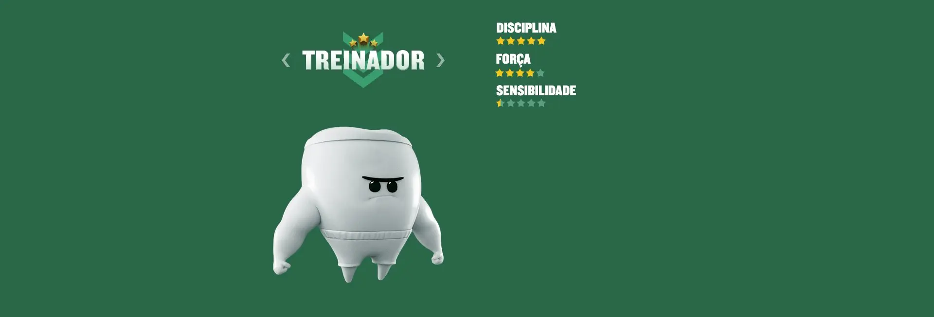 Discípulo dos métodos autoritários de Genghis Vhão, o Treinador é que nem uma gengiva saudável: não dá mole para nenhum dente. Por isso mesmo, seus treinamentos diários sempre incluem sessões de escovação, fio dental e LISTERINE® para que seus recrutas fiquem prontos para qualquer tipo de combate contra a cárie. “Ser soldado é 90% suor e 10% flúor” ele grita, orgulhoso que nenhum de seus soldados ficou um dia sequer sem treinar. Como ele mesmo diz: “ai, ai, ai de quem não se preparar”.